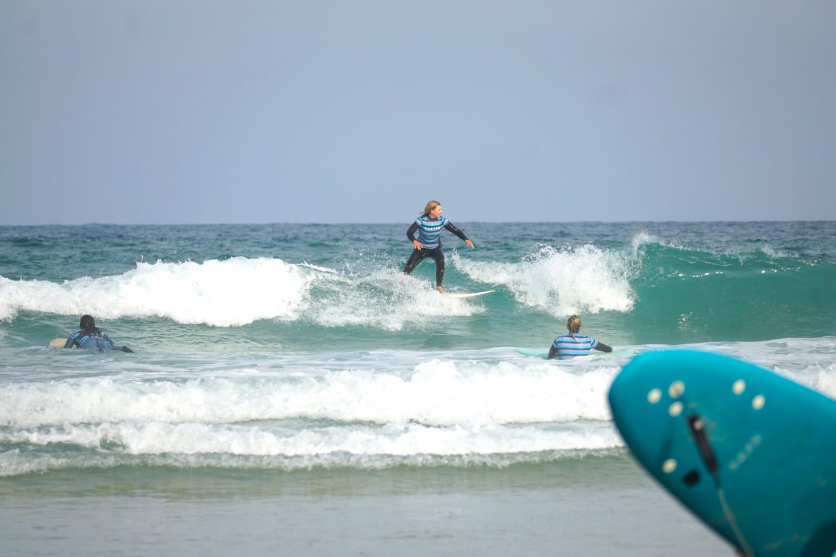 This snapshot week was the first week back for our Surf Sistas Cornwall Courses & Retreats for 2023 and coached a group of 10 woman from the UK and overseas. It was a lovely time and we had a good giggle throughout. We were blessed with fun sized waves throughout the week. Not too big and not too small – perfect for learning to paddle out back and catch green waves on – which everyone managed successfully!