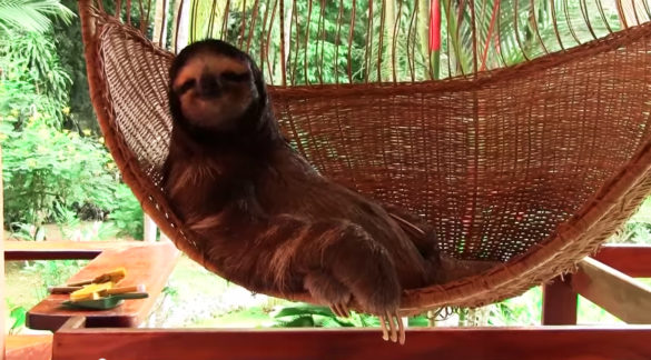 Yes thats a sloth relaxing in a basket hammock .. pura vida!